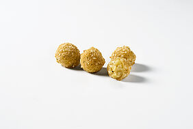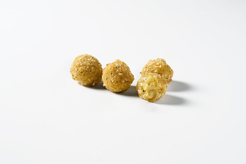 Delicately melting Camembert, wrapped in a fragrant herb coating of rosemary, thyme, basil and marjoram, creates a beautifully balanced Mediterranean flavour experience. A subtle hint of garlic adds a gentle savoury lift, rounding everything off with ease. At 20 g per piece, they’re perfect as a refined snack or a flavourful addition to modern dining concepts.