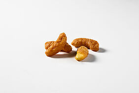 A delicately smoked Strasbourg-style sausage wrapped in a light, airy batter, lifted with a subtle touch of pepper. Fried to a deep golden crisp, it delivers that irresistible contrast: a crunchy, savoury coating giving way to a juicy, flavour-packed centre. At just 12 g per piece, Popcorn Dogs are made for effortless snacking, sharing and those moments when you just want something quick, satisfying and a little bit different.