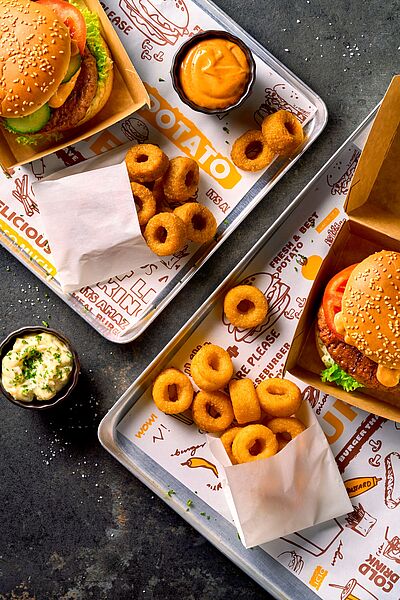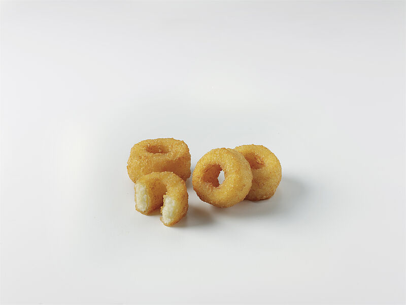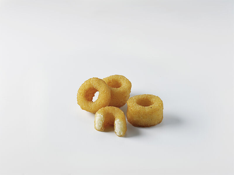 Significantly smaller than standard frozen snacks (just 12 g per piece), Cheesy Loops are ready to serve in around two minutes. What’s more, they retain their signature crispy texture for an extended period – a real advantage during peak service times and holding phases. Compact in size, big on impact.